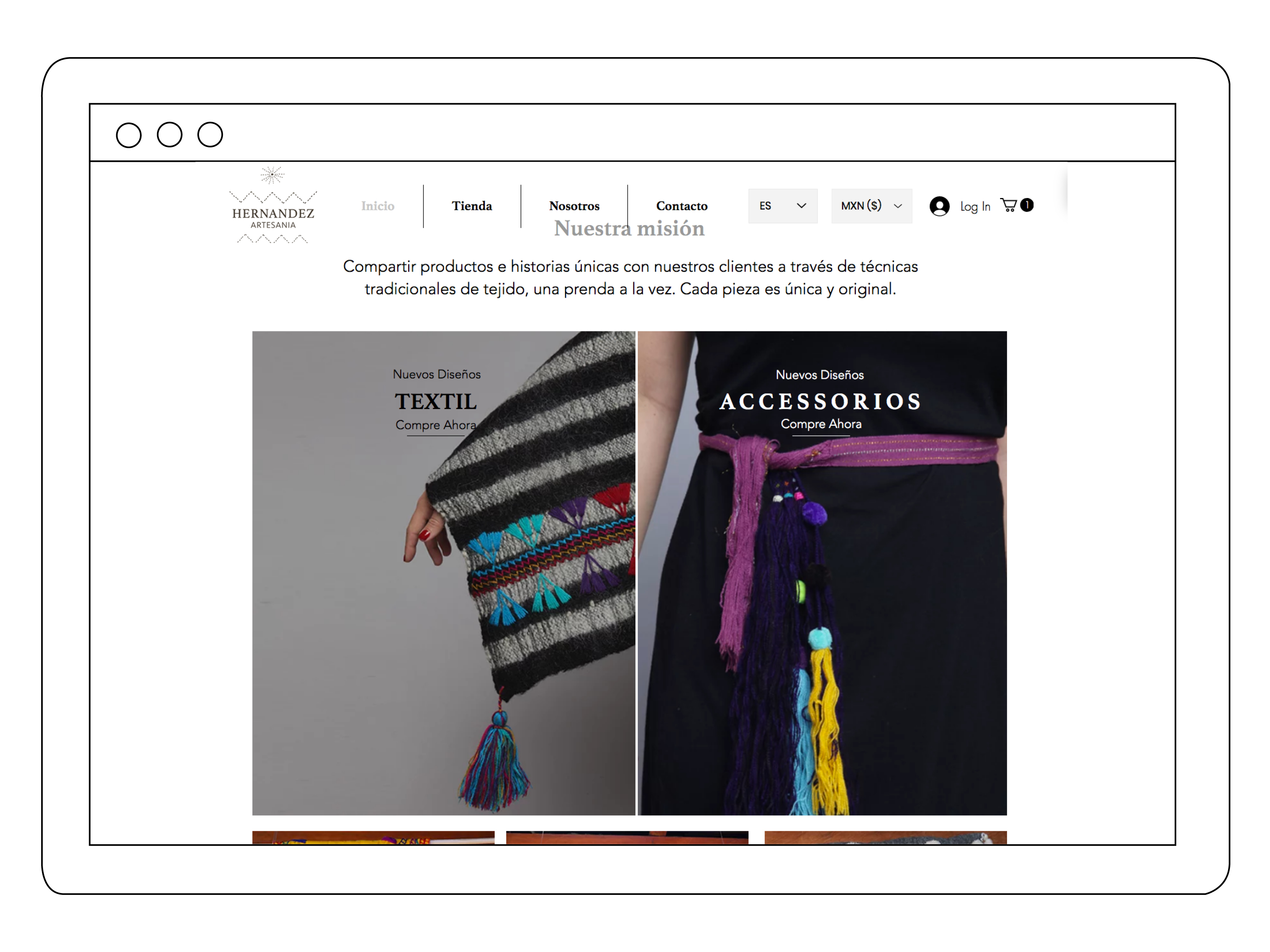 This website is meant to serve two purposes: first, to function as an e-commerce marketplace, and second, to share Hernandez Artesania’s unique narrative. The site hierarchy is important for two reasons: one, it allows the visitor to get a sense of the Heranez Artesania’s brand as well as the ability to search for timely content, new items for sale, or new videos about the family highlighting the traditional process of weaving and various handmade goods.