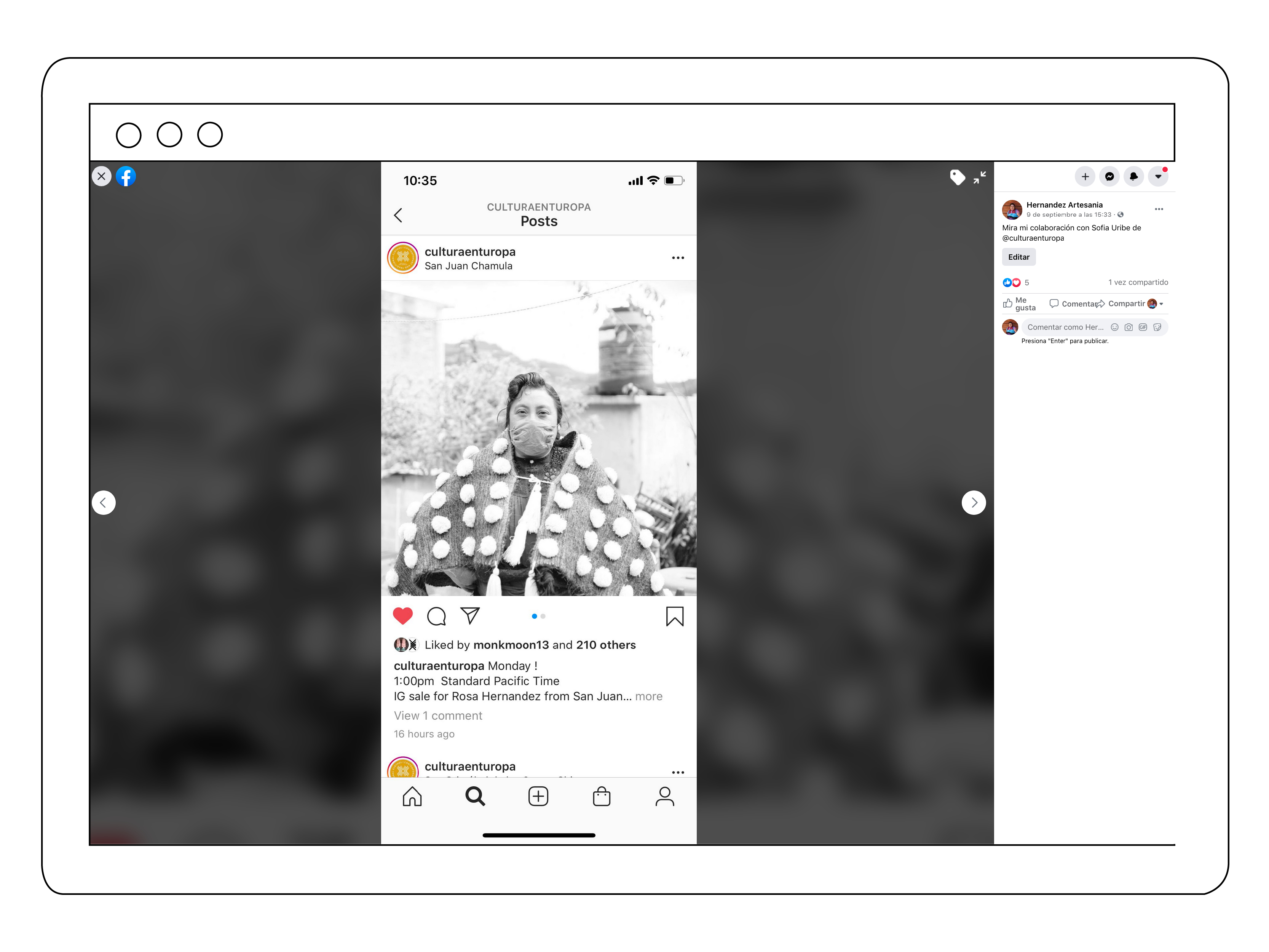 The Hernandez kids (Carlos and Cesar) are the primary points of contact who will be responsible for the social media strategy. We discussed using Facebook as a business vehicle, as the idea was to drive traffic from their Facebook page to the website using an ad campaign with posts highlighting new products, photos or videos of the process that goes into the making of their textiles. The Facebook business page was created and went live in the summer of 2020, after the website was finalized.